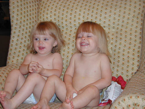 Clara and Mary Catherine after Sunday evening bath, June 25, 2006